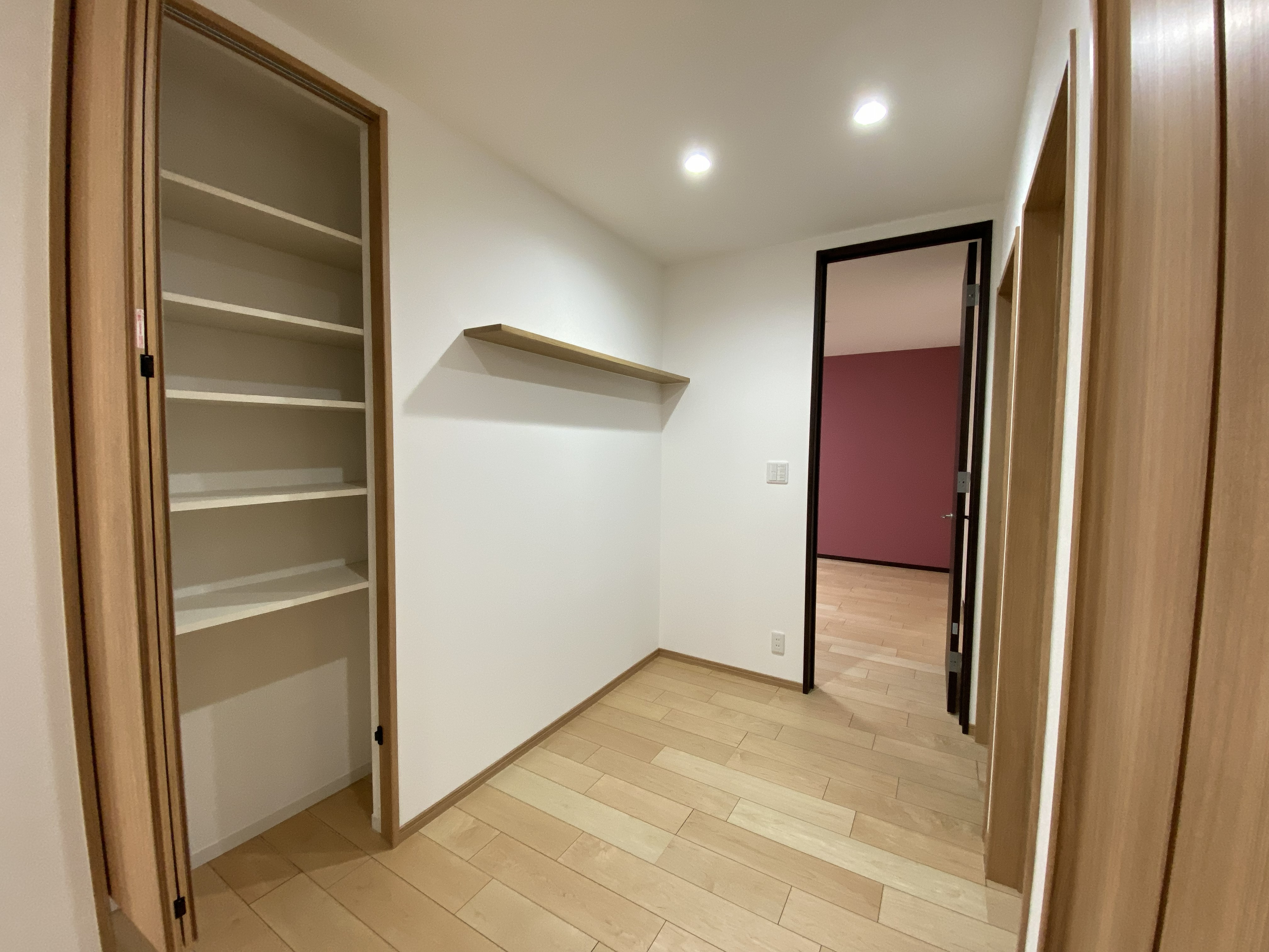LDKから続くピアノ置き場。ピアノの隣には、楽譜収納スペースなど。
